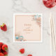 A modern and elegant boho wedding napkin, with blue and terracotta watercolor florals at the corners. Customize with your names and wedding date.
