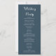 Featuring white lettering that contrasts beautifully with the blue and gray tones, the words "Welcome," "Ceremony," and "Wedding Party" are written in a romantic script font that adds a touch of elegance and sophistication to the program. The couple's names are also prominently displayed in a decorative distressed font, making it a personalized keepsake for the couple and their guests.