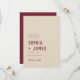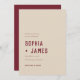 Modern Save the Date Card Template in dark berry red and cream white with strong clean typography and a boho arch on the back of the card. Customize this Wedding Save the Date Card to fit your needs, change text elements and colors if you like.