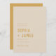 Modern Save the Date Card Template in golden beige and cream with strong clean typography and a boho arch on the back of the card. Customize this Wedding Save the Date Card to fit your needs, change text elements and colors if you like.