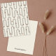 This elegant note card design features a minimalist front personalized with a name in elegant script at the bottom, offering a clean and sophisticated look for your name or custom message. The reverse side showcases a modern, geometric, boho style pattern with curved lines and subtle brown raindrop accents, adding a unique and artistic flair. The combination of simplicity on the front and stylish detailing on the back makes this note card perfect for personal correspondence, thank you notes, or professional stationery. Ideal for those who appreciate a balance of understated elegance and contemporary design.