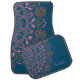 Modern Boho Mandala Medallion Blue Script Name Car Floor Mat