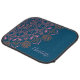 A modern spin on a classic mandala motif in pink and orange on a dark teal blue background, personalized with your name.