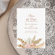 This modern boho Save the Date card features soft pampas grass florals in warm beige and blush tones. Designed for couples planning elegant boho, neutral, or outdoor weddings, it sets a relaxed yet refined tone. The airy botanical composition reflects 2025–2026 wedding trends focused on natural textures and understated beauty. Clean typography keeps the design timeless and easy to read. Fully customizable with names, date, and location. A beautiful first announcement for a modern boho celebration.
