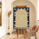 This boho pattern wedding arch design perfectly complements the free-spirited and bohemian vibe of weddings. This Boho black and white geometric design is a trendy style that combines the simplicity of black and white with the intricate patterns of geometric shapes. The contrast between the black and white colors creates a bold and striking look, while the geometric shapes add a sense of structure and order. The use of warm and earthy tones like gold, burnt orange, green and coral adds to the boho aesthetic. This boho wedding arch design is a great way to infuse personality and charm into your special day. Whether used as an welcome sign, table decor or as the main design on your wedding invites, this boho design is a versatile and stylish choice for your wedding stationary, decor and favors.
