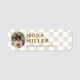 Modern Boho Retro Vintage Checkered Pattern Photo Name Tag