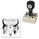Add personal or business name and address details to a cool Boho style stamp that features a cow skull decorated with feathers and beads.