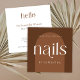 Minimal boho nail artist or technician business card with modern fonts and terracotta color scheme. The retro font design reads 'nails' and 'hello' and adds a really trendy feel to this bohemian calling card design, perfect for your nails salon. You can customize this nails business card with your brand colors, logo and business details to make it your own.