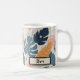 This stylish personalized mug features modern boho whimsical tropical leaves with dots and line drawings.