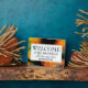 Modern Bokeh BE BLESSED Welcome plaque. Stylish WELCOME plaque with the wording WELCOME & BE BLESSED ALL WHO ENTER HERE (EXCEPT TRESPASSERS). The background is an orange bokeh pattern. All text is CUSTOMIZABLE so you can amend the wording to suit your needs.