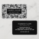 Modern stylish business card with a chic black and white swash pattern and white trendy typography text on a black background. Fill in placeholders with your custom text.