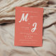 Modern Bold Coral Pink Monogram Wedding Invitation