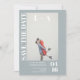 Modern simple minimalist initials photo wedding save the date. Add your couple photo, initials or monogram with a simple bold script with dusty blue gray.