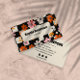 Make a memorable first impression with this stylish bold floral business card featuring a trendy black-and-white checkered background decorated with vibrant orange, pink, and cream flowers.