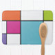 Inspired by the iconic Tableau painting by Mondrian, this modern bathmat is a celebration of bold geometric forms and fresh, bright colors of blue, pink, orange and green.