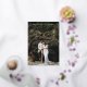 This modern and bold thank you card features a large thank you message in real gold foil on top of a photo background. The couple's names are displayed above the thank you message and the inside is blank to handwrite a personalized thank you message.