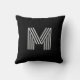 This modern and stylish pillow features your monogram in a trendy, gray striped, disco-style typography initial on a dark, black background. A cool and elegant look that anyone would love.
