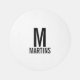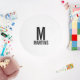 Modern Minimalist Design features personalized family monogram and name in black modern bold sans serif font style on white background.