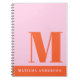 A stylish, personalized monogram notebook featuring a bold blush pink initial and name on a deep forest green background. Perfect for students, writers, and stationery lovers who appreciate clean, minimal design. Customize the name and initial for a thoughtful gift — ideal for birthdays, back to school, or everyday journaling.