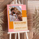 Modern Bold Pink Orange Photo Wedding Welcome Sign