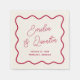 Retro wedding napkins to match our Wavy Frame Retro Wedding collection. This design features the couple's names in chic script calligraphy framed by a hand-drawn wavy border. Add a personal touch to your wedding, reception, or dinner with these custom napkins. View the collection linked on this page for the full wedding suite. Feel free to message me with any questions, I'll be happy to help!