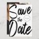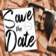 Modern Chic Save the Date Card with large oversized bold typography in black handwriting marker style over a clean white background. Custom name and date circle on the front. The back is perfect to display your own photo. Editable by clicking the "personalize" button. Don't forget to check out the coordinating items in the collection for a modern, fun, unique wedding suite.