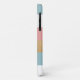 Chic iPhone 11 case, with a modern bold white, rose pink, blue and gold horizontal striped pattern. Personalize the one letter monogram as a great gift idea.