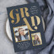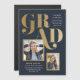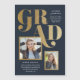 A modern photo graduation invitation and announcement magnet featuring a bold metallic type overlay and two photo design.