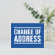 Modern bold typography change of address moving postcard. Simple moving cards for new home or relocation. Big letter design for new family home, corporate business, company, office, shop, store etc. Blue or custom background color. Give people notice we have moved. Add your own new location on the back. Change the quantity to get the cheap bulk price. Also handy for clients, guests, co workers etc.