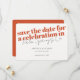 Dare to party with this modern and bold wedding save the date design, a unique take on save the date invitations for modern couples featuring bright and bold burnt orange, a modern script font for your wedding location and fully customizable text elements. The perfect choice for a desert wedding, fall wedding or summer wedding! All colors can be changed too if you like so you can easily switch from the bright orange to any other color you want!