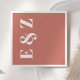 These simple, modern wedding napkins feature the couple's initials in bold white typography arranged vertically at the left margin on a terracotta background
