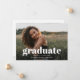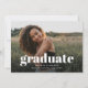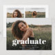 Make a statement with this Modern Bold Typography Three Photo Graduation Announcement. Featuring striking lowercase typography and a clean, contemporary layout, this design beautifully highlights three favorite senior portraits. The front showcases a bold “graduate” headline, while the back offers space for additional photos and personalized details. Perfect for sharing your milestone with family and friends in a stylish, modern way.