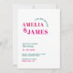 modern Bold Wavy funky Dark Green & Pink Wedding Invitation