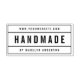 Stylish Handmade Rubber Stamp featuring your name and website address in bold fonts between divided rectangle border.
