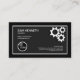 An exquisite creamy black design. Simple Modest, a frame within a frame. The card face is encapsulated by a white border on the cards outer rims. Within its borders, it is a shade lighter ; A dark grey. At the corner of this box are three gears representing the mechanism of being an engineer. Directly across you have your name and job title, with the contact details in tow. Directly underneath, is your elegant logo. Eastwards, you have all your business details. Overleaf the same color theme applies. All information are housed at the card's midsection. At the top, you have your second logo option. If you so wish to upload your photo, the dimensions are 1,000 x 1,000 pix. Beneath the logo are the business name, a slogan tagline option for you to personalize your design and finally the business URL. This is a simple great design to represents your artistic and immaculate talents. This card may be suited for engineers or just about anyone who loves black.