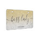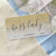 Modern boss lady quote yellow gold glitter sparkles ombre on white marble with an elegant script calligraphy.