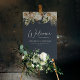 Modern rustic botanical elegant navy blue and white tropical script welcome to the wedding of design sign. Part of a modern collection.