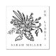 This modern squared library stamp features a rustic tropical botanical bouquet and elegant serif typography in upper cases. ¨The botanical motif takes up most of the space, the ´´ex libris´´ is on the side, and your custom name and last name are on the bottom. There is a dot in one corner to bring the design together. To customize it, simply click on the ´´Personalize this template´´ button and change the name to your own.