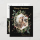This modern watercolor botanical greenery and berries photo holiday postcard with a photo in the center of the front and the words "Merry Christmas" in a modern script font in gold above the photo and your family name and the year in the same script font in gold below the photo is perfect for sending to your friends and family. The back has a coordinating photo frame with foliage and berries continuing the elegant design onto the back. The holiday message is customizable and can be changed to any wording you'd like.