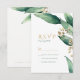 Rustic painted watercolor botanical greenery leaves in lush forest green, modern, elegant and romantic, great RSVP cards for rustic wedding, country wedding and garden wedding in spring and summer.