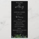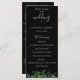 Modern watercolor botanical greenery, black wedding program. Program features multiple lines for custom text lists for ceremony order of events, wedding party and thank you note.