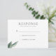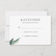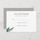 A wedding response card co-ordinating with our clean, elegant and modern wedding invitation, featuring watercolor green leaves on a white background, and elegant dark gray text. The reverse is in solid gray.