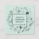 This modern botanical mint and black square business card features a beautiful hand drawn black floral design over a mint colored background, and overlaid with a black bordered mint rectangle featuring your name and title, or occupation. The back of the card features the same mint background, and you may personalize all your contact information easily. Includes social media icons and a field for your username.