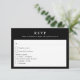 This elegant RSVP card features a sophisticated black and white design, perfect for a modern and timeless wedding aesthetic. The front showcases a classic RSVP format with refined serif typography, allowing guests to easily respond while selecting their meal preferences. The back displays a minimalist botanical monogram with the couple’s initials and wedding date, adding a personal and stylish touch. The stylish black and white design creates a refined and luxurious feel. Ideal for formal, modern, or classic weddings, this RSVP card ensures a polished and cohesive look for your wedding stationery suite.