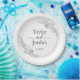 The center of the plate showcases the names of the couple in a sophisticated mix of classic serif and flowing handwritten script. Your wedding date is featured below in a crisp, contemporary font. With its timeless black and white monochrome palette, this tableware seamlessly complements any wedding theme, from a chic urban loft to an intimate garden ceremony. These high-quality plates offer a practical yet beautiful way to maintain a cohesive design across your dessert table or appetizer station.