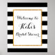 Modern and chic bridal shower welcome sign. Black and white strip with a touch of faux gold glitter.