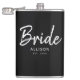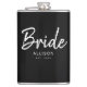 Stay hydrated in style with this Modern Bride Black White Script Personalized Name Flask. It is designed with "bride" in modern white brushed script lettering. Personalized with bride's name and established year of wedding. Customizable black background. Great gift idea for bridal shower, bachelorette party or honeymoon.