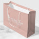 featuring personalized bridesmaid's name in white modern script font style with text in modern sans serif font style on blush pink background.