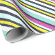 Give your gifts a bright and bold finishing touch, with this colorful wrapping paper. The gift wrap is patterned with diagonal stripes in a combination of vibrant colors, including magenta pink, light blue, lemon yellow, white and navy.