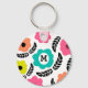 Modern Bright Flowers and Black Leaf Monogram Keychain